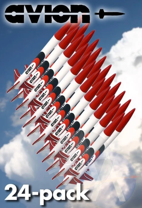 A classroom pack of 24 Avion rocket kits, which is a great ‘First Rocket” and perfect for educational groups! Your students will love this first introduction in model rocketry.