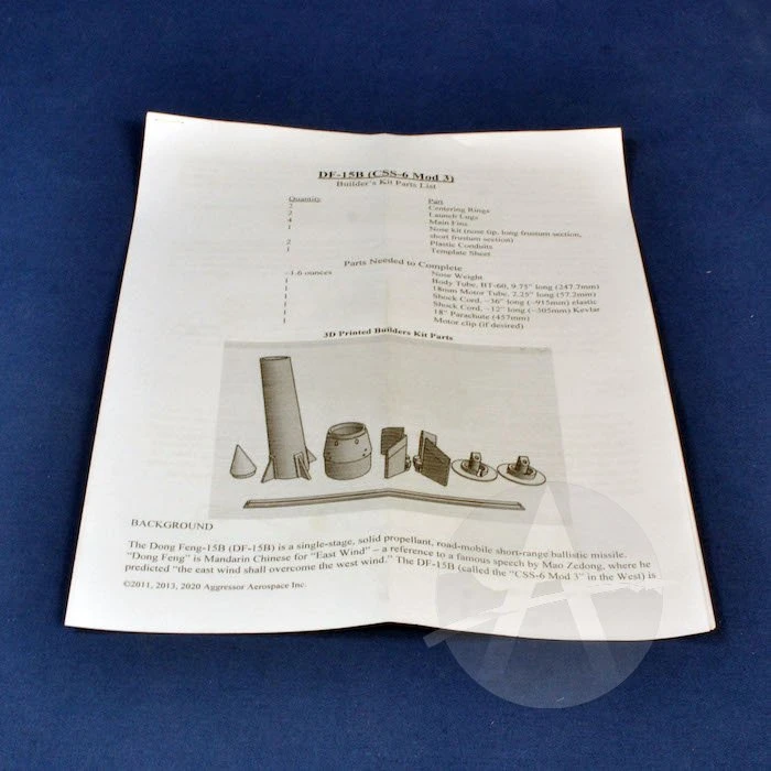 SKU: YXBVZ 07902 Categories: Model Rocket Kits, Skill Level 4 Model Rocket Kits Tags: Aggressor Aerospace Rocketry, Skill Level 4 Model Rocket Kits