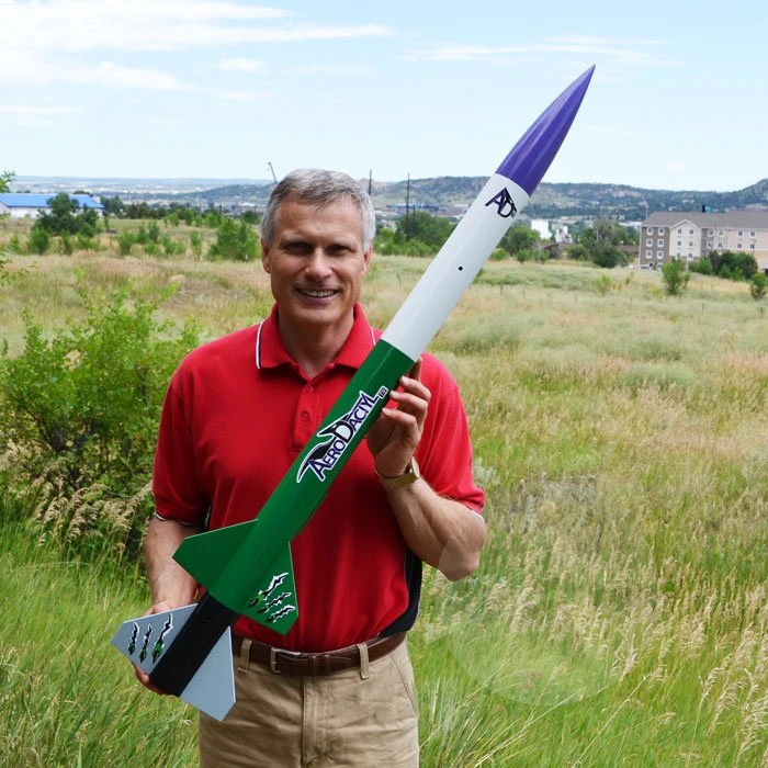 The AeroDactyl Two-Stage (TS) is a simple to build model designed specifically for the lower thrust black-power motors from Estes. Fly it to create a huge billowing column of smoke. Can also be flown as a single stage rocket using composite motors for a higher speed flight.