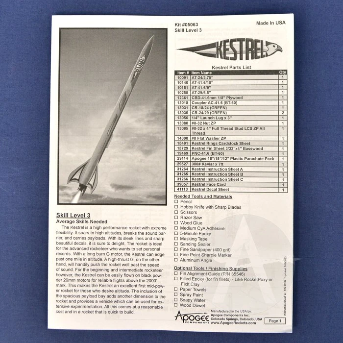 SKU: YXBVZ 05063 Categories: Model Rocket Kits, Skill Level 3 Model Rocket Kits Tags: Apogee, Skill Level 3 Model Rocket Kits