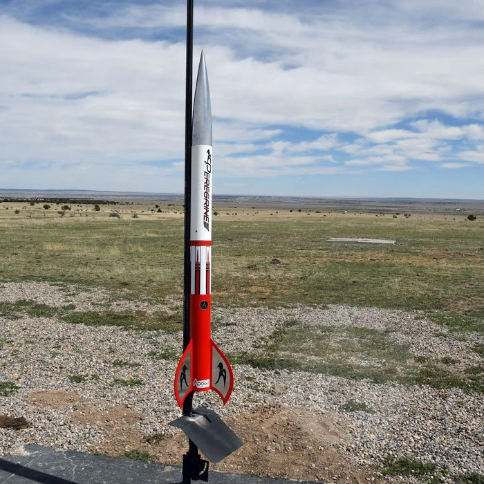 The Peregrine is a robust high-power dual-deployment rocket for those people that already have their Level-1 high-power certification. It is an easy to build rocket with the electronics compartment, dual parachutes, and two full sheets of vinyl decals. The big size and colorful decor make it a crowd-pleasing rocket.