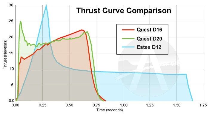 The Quest D20-8 is a great all-around motor for your typical rockets. It is particularly suited for heavier or larger diameter rockets. It features composite propellant, which has twice the energy as a black powder motor. Same size and diameter as an Estes motor, so it fits all your favorite rockets. But this is for single-stage rockets only, as it cannot be staged.